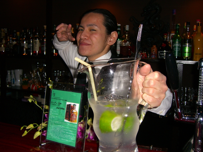 飲むときはマドラーでライムを潰しながら、香りと味を楽しむ。ライムがなければレモンで代用してもよい。